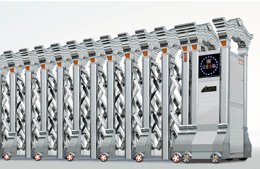 動伸縮門主要有伸縮門體、機頭、控制器三部分組成。